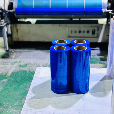 Rollo de película de embalaje de plástico BOPP azul Pe 300M 50cm estiramiento manual LLDPE envoltura elástica transparente para paletas paquete transparente